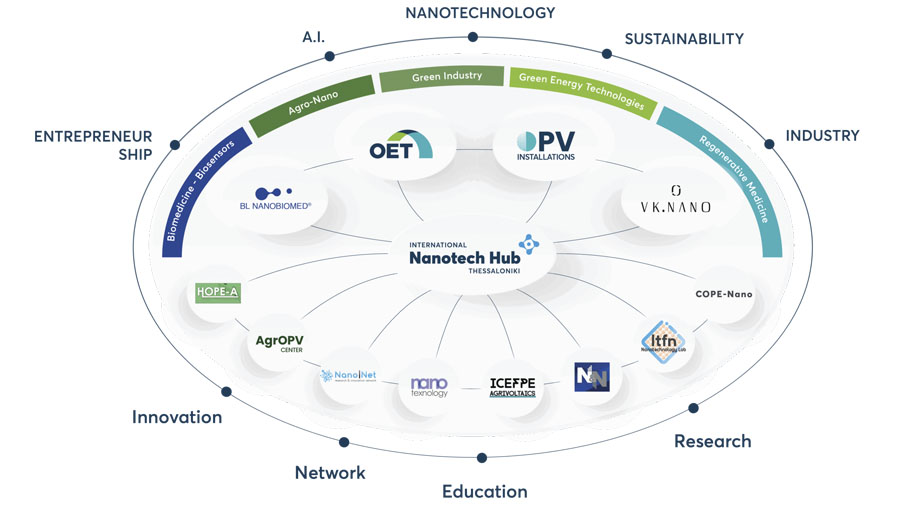 Στη Θεσσαλονίκη, συγκεκριμένα στην περιοχή των Ταγαράδων Θέρμης, σε παγκόσμιο κέντρο καινοτομίας και νανοτεχνολογίας εξελίσσεται το International Nanotechnology Hub Thessaloniki (NHΤ), που υποστηρίζεται από σημαντικούς φορείς και εταιρείες όπως η Organic Electronic Technologies με ηγετικό ρόλο στην παγκόσμια σκηνή, ενώ το Κέντρο Αριστείας COPE Nano και το ευρωπαϊκό πρόγραμμα Flex2Energy δημιουργούν στην περιοχή το πρώτο στον κόσμο εργοστάσιο μαζικής παραγωγής φωτοβολταϊκών 3ης γενιάς. Ο συνολικός προϋπολογισμός είναι της τάξης των 51 εκατ. ευρώ.
